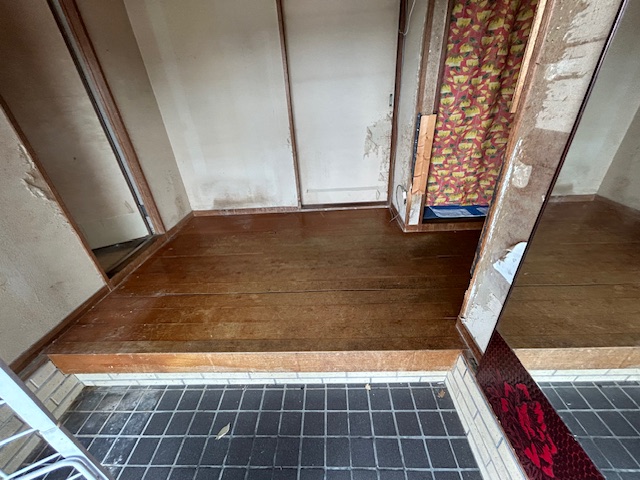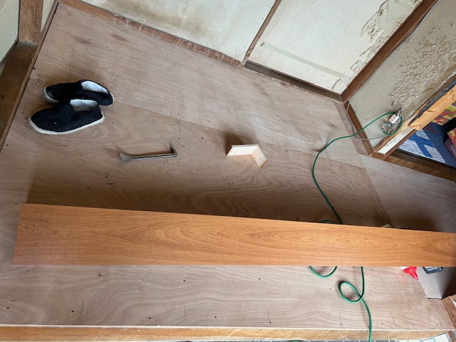 福知山市 A様邸 玄関廊下床工事 2024年11月18日 最終更新日時 : 2024年11月19日 RyHaus 玄関前廊下床工事です。 大分傷んでいます。 補強も兼ねて、下地を貼ります。 段差解消ににもなりました。 完成です。