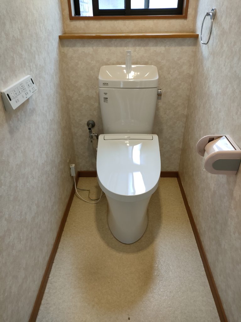 福知山市 ウォシュレット故障 トイレ交換工事 2024年11月22日 最終更新日時 : 2024年12月2日 RyHaus oplus_34 本日は、トイレ交換です。 向かって左側機能部より水漏れです。 年数も経っていますので交換希望です。 oplus_34 リモコン操作になるので、スッキリした感じです。 完成です。