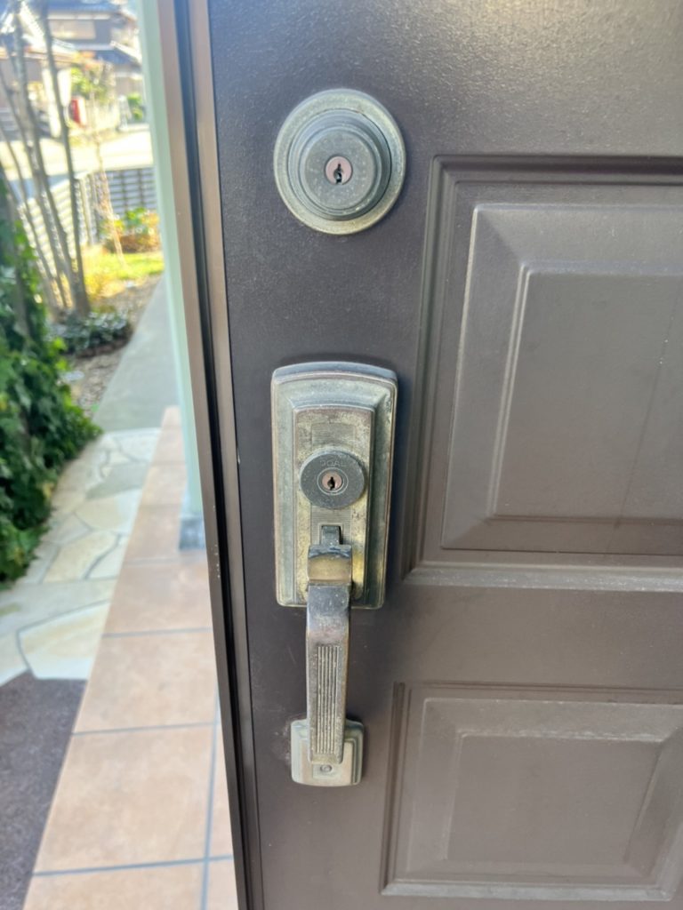福知山市にて玄関ドアの鍵の交換 2023年4月5日 最終更新日時 : 2023年4月6日 RyHaus 福知山市にて玄関ドアの鍵の交換 福知山市にて、玄関鍵の取替行いました。 だいぶ年期物なので、同じようなのがあるか不安でしたが なんと、同じものがあるではないですか! あきらか色が違いますね。 お客様もびっくりされ喜んでおられました。 無事交換できて良かったです。